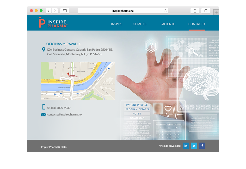 Brand and website for Inspire Pharma. Their goal it's to provide Institutional Review Boards services (Ethics committee and scientific committee) and external monitoring services.